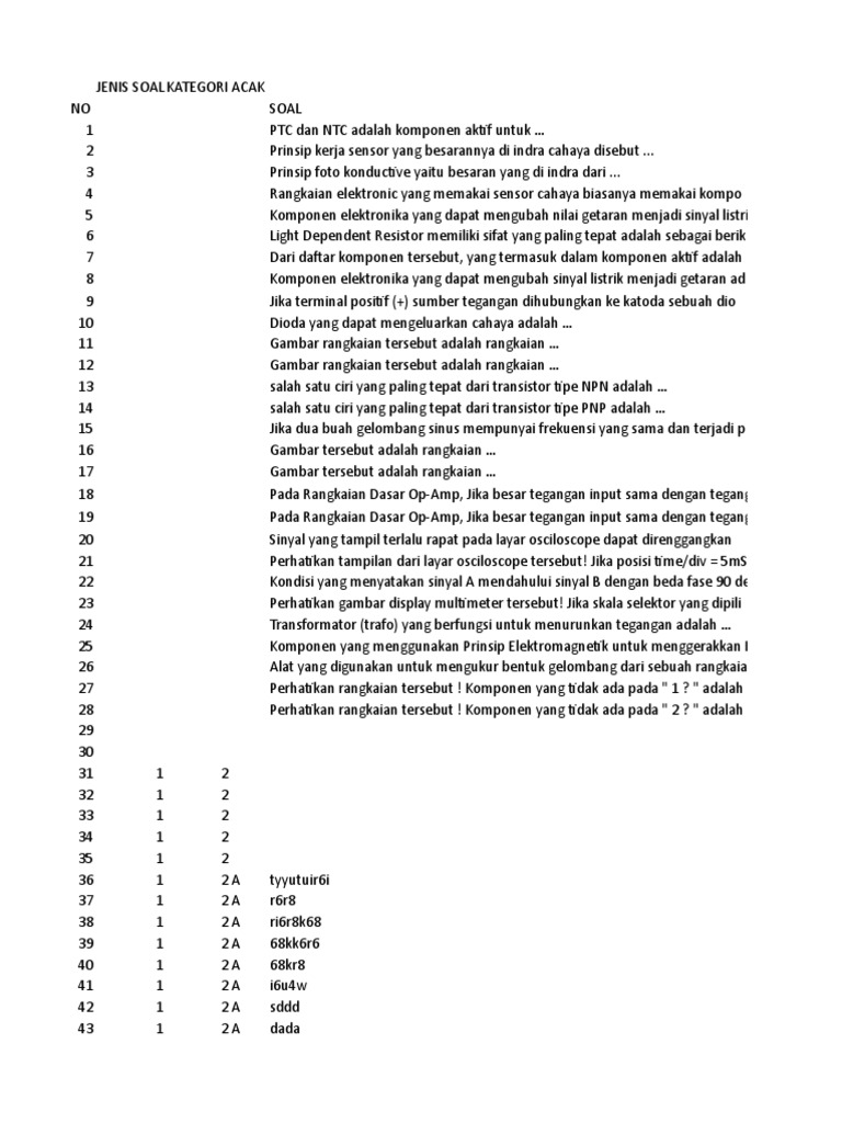 Soal Pilihan Ganda Penerapan Rangkaian Elektronika Python from imgv2-2-f.scribdassets.com Soal teknik kerja bengkel x. Thyristor adalah komponen semikonduktor untuk pensaklaran yang berdasarkan pada struktur pnpn. Please fill this form, we will try to respond as soon as possible. Pagi pak saya juga minta tolong kirim rpp penerapan rangkaian elektronika kelas xii dan materinya terimakasih. Selain itu juga mereka sangat diperlukan dalam. A) buatlah rangkaian inverting detector dan jelaskan kerakteristik i/o. Smk negeri 1 bukateja : Rangkaian elektronika dapat diartikan sebagai gabungan 2 atau lebih komponen elektronika baik rangkaian elektronika dapat dibangun dengan atau tanpa sumber tegangangan atau sumber arus layout pcb atau dengan bahasa lain papan rangkaian tercetak adalah hasil penerapan skema.
